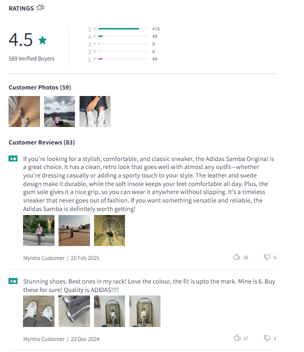 - Genuine feedback from customers through ratings & reviews